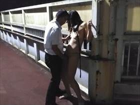 素人夫婦が個人撮影した投稿映像です。場所は夜の歩道橋の上。スーツ姿の男が奥さんの体に触れながら歩いています。そして体を弄り玩具まで使い始めます。